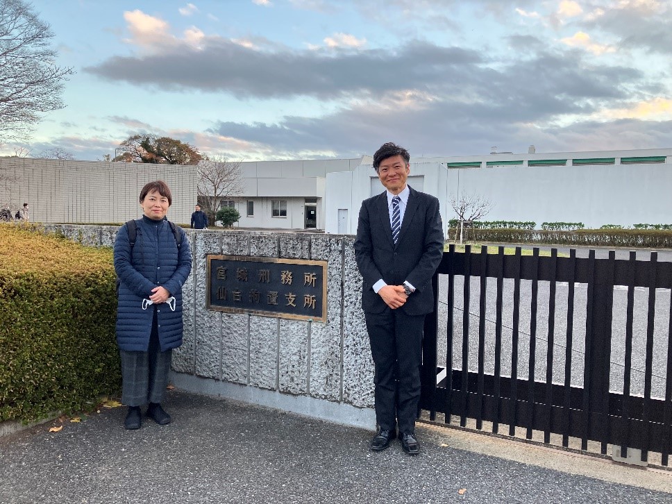 (宮城刑務所前にて)