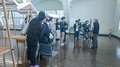 塩竈はアートと歴史を中心とした市民主体の取り組みが注目される街です。修復し新たに活用されている歴史的建造物の点在する町並みを歩き、塩竈市杉村惇美術館を訪問しました。震災後、レトロな雰囲気のある公民館に美術館機能を加え改修しオープンしたユニークな美術館です。絵画作品や、様々な催事に活用されている特徴ある大講堂をはじめとした館内の雰囲気を楽しみながら、学生たちは、塩竈の魅力は何か、どう伝えるか考えました。