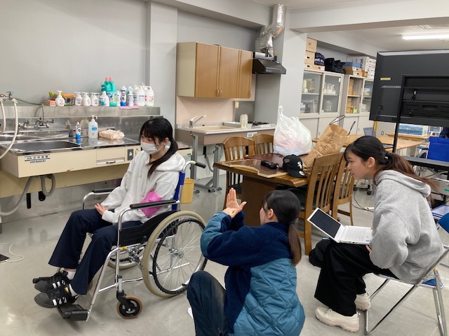 身体障害作業療法学演習は、脳卒中による片麻痺、脊髄損傷、パーキンソン病などの変性疾患などによる機能障害によって日常生活能力が低下した人への支援技術を学びます。12月3日は姿勢について学びました。
