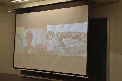 現地からのオンライン講義という生の声を学生たちは聞くことができ、楽しく学生たちは受講しておりました。