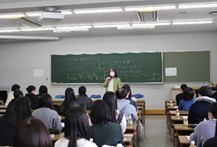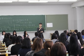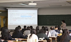 入学後に実際に使用する講義室での大池真樹教授による「子どもの発熱と看護」の講義、