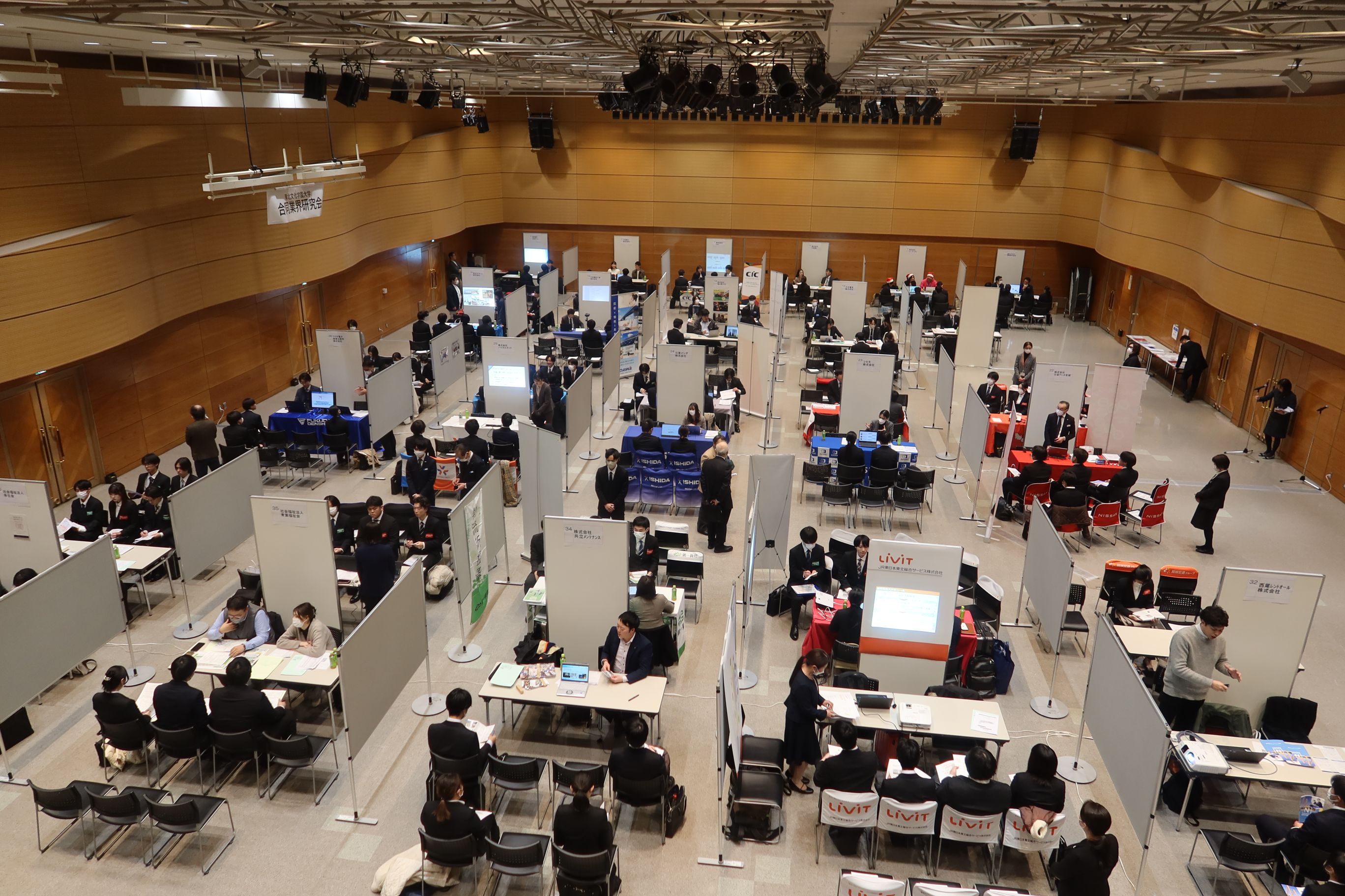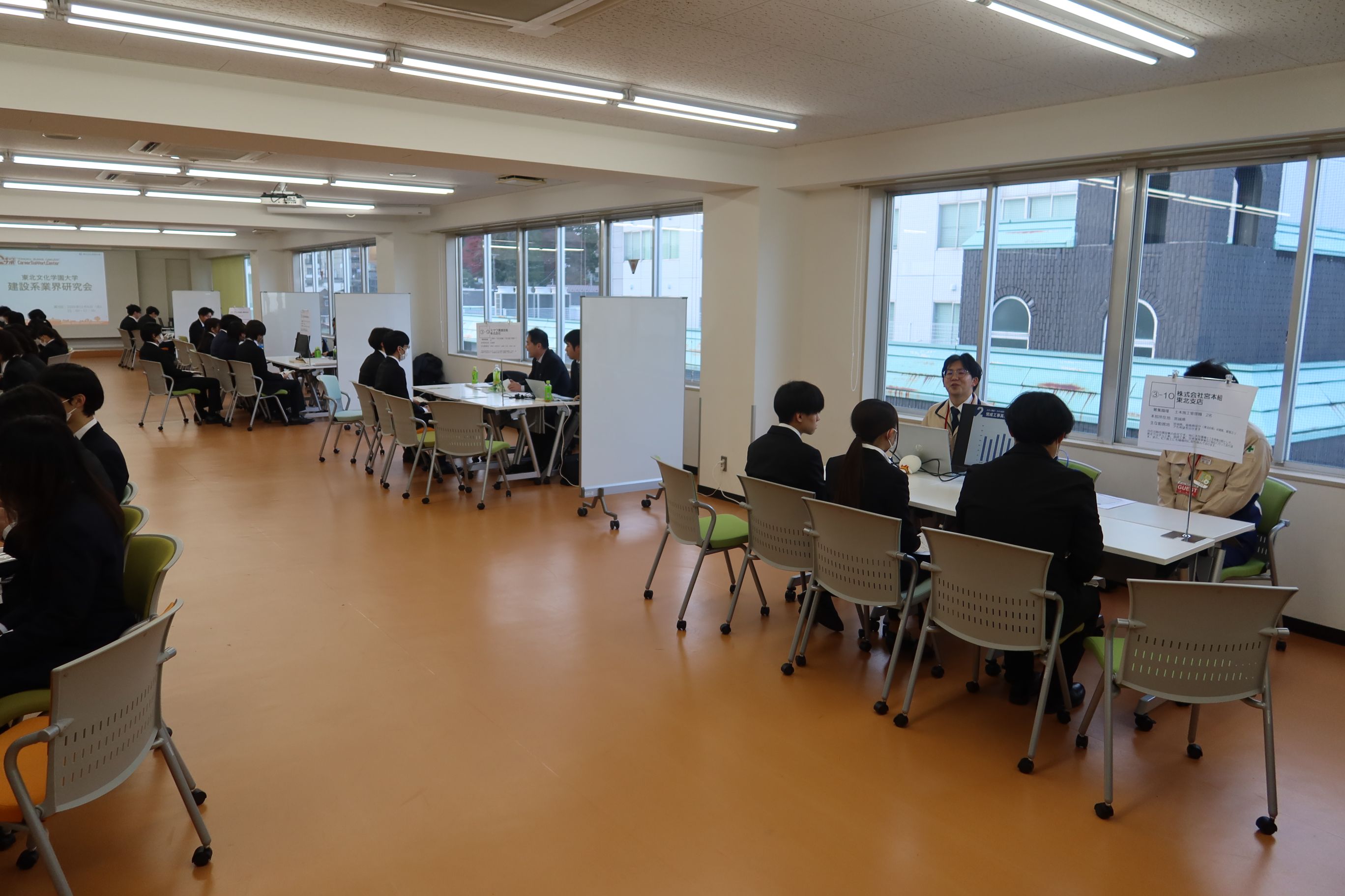 建築系業界研究会では大学内で3回に分けて対面開催し、建設分野の計30社にご参加いただきました。3日間で建築環境学科及び他学科の学生も含め、延べ106名が参加しました。