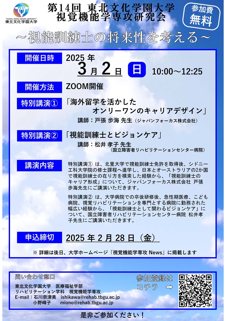 第14回 東北文化学園大学 視覚機能学専攻 研究会 のお知らせです。