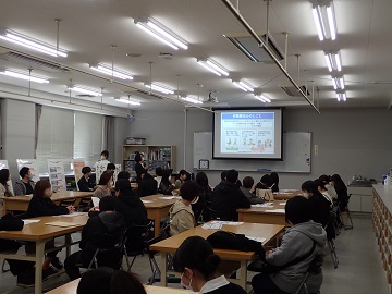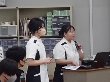 学生生活の紹介では、入学時から卒業時までの授業や実習のことなど、学生の目線で説明してもらいました。