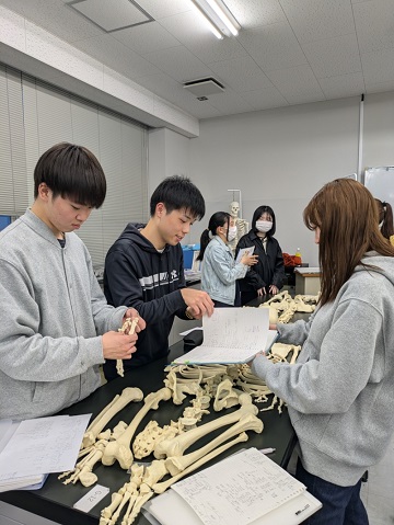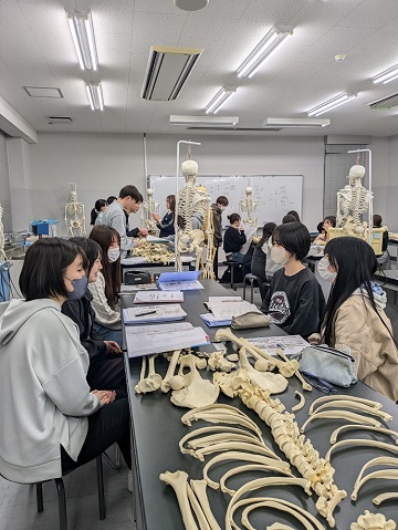 「解剖学実習」は、「解剖学」の中でも作業療法士にとって重要な骨・筋・神経の知識を中心に、実際の標本などを操作しながら学ぶ体験型の科目です。