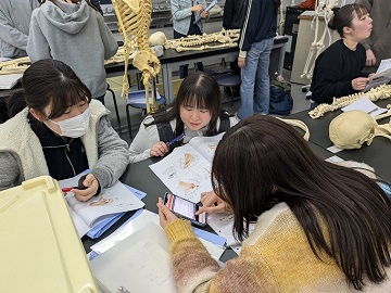 解剖学では難しい漢字も使います。授業の中で正しい読み方も調べて、正しく使うことを学びます。