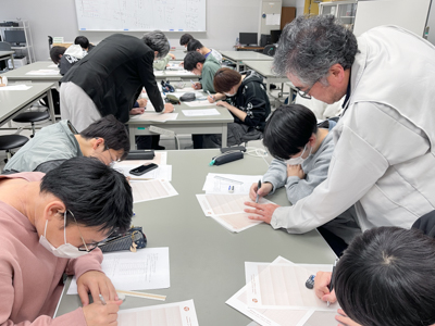 鈴木伸夫教授がさまざまなデータの扱い方について解説した後、学科教員も演習サポートに加わり、アクティブラーニング形式で授業を行いました。