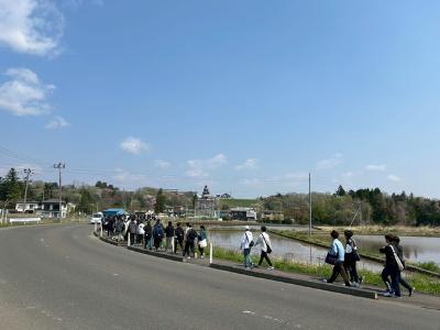 新緑が芽吹く定義道を、グループごとに会話を交わしながら、穏やかな雰囲気で歩を進めました。