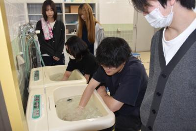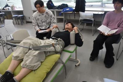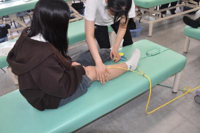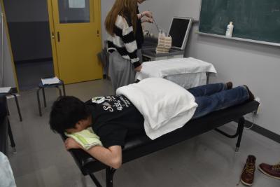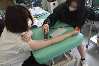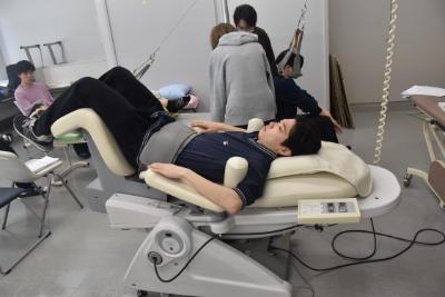 3年生を対象にした本科目では物理療法機器を用いた実習をしています。