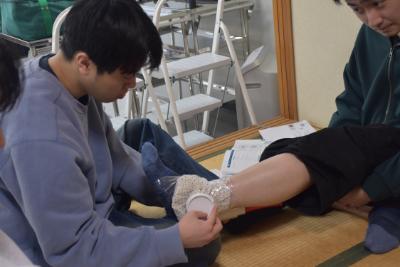 2年後期で物理療法の原理、効果、禁忌etcを学んでいますので、それらを確認しながら実際の機器操作や体験をしています。