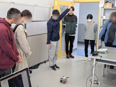 施設紹介に加え、手の動きをセンサーで読み取って車型ロボットを操作したり、二輪でバランスを取りながら自立走行する人型ロボットを実際に動かす体験企画も実施しました。参加者の皆さんがロボットに触れ、自分で操作する様子が見られました。