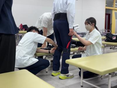 理学療法学専攻では、本学独自の入試方式の一つである「育成入試」の体験企画を実施し、参加者の皆さんに在学生と一緒に模擬体験していただきました。
