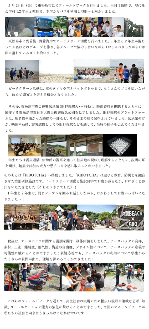 2025.05.23 #社会学専攻 新入生、在校生交流会 in 東松島 本学は東松島市と包括連携協定を結んでいます。その東松島市で新入生、在校生交流会をおこないました。今回は交流会の詳細をレポートします。