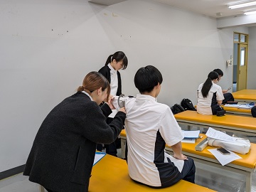 単純に動作や手順を真似るのではなく、これまで学んだ知識をつなぎ合わせて、1つ1つの手順の意味を考えながら実習しました。お互いの実技に対し、感想を述べあい、切磋琢磨して知識・技術・態度を高めていきました。