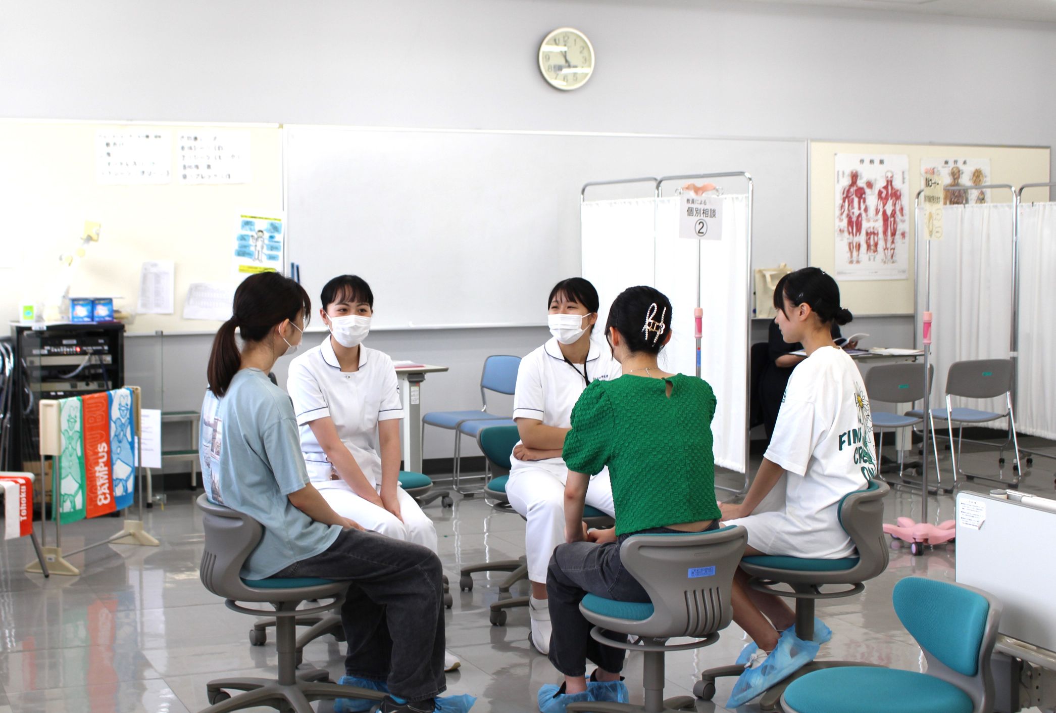 多くの質問があり、看護学生からは今までの大学生活からの経験をお話させていただきました。