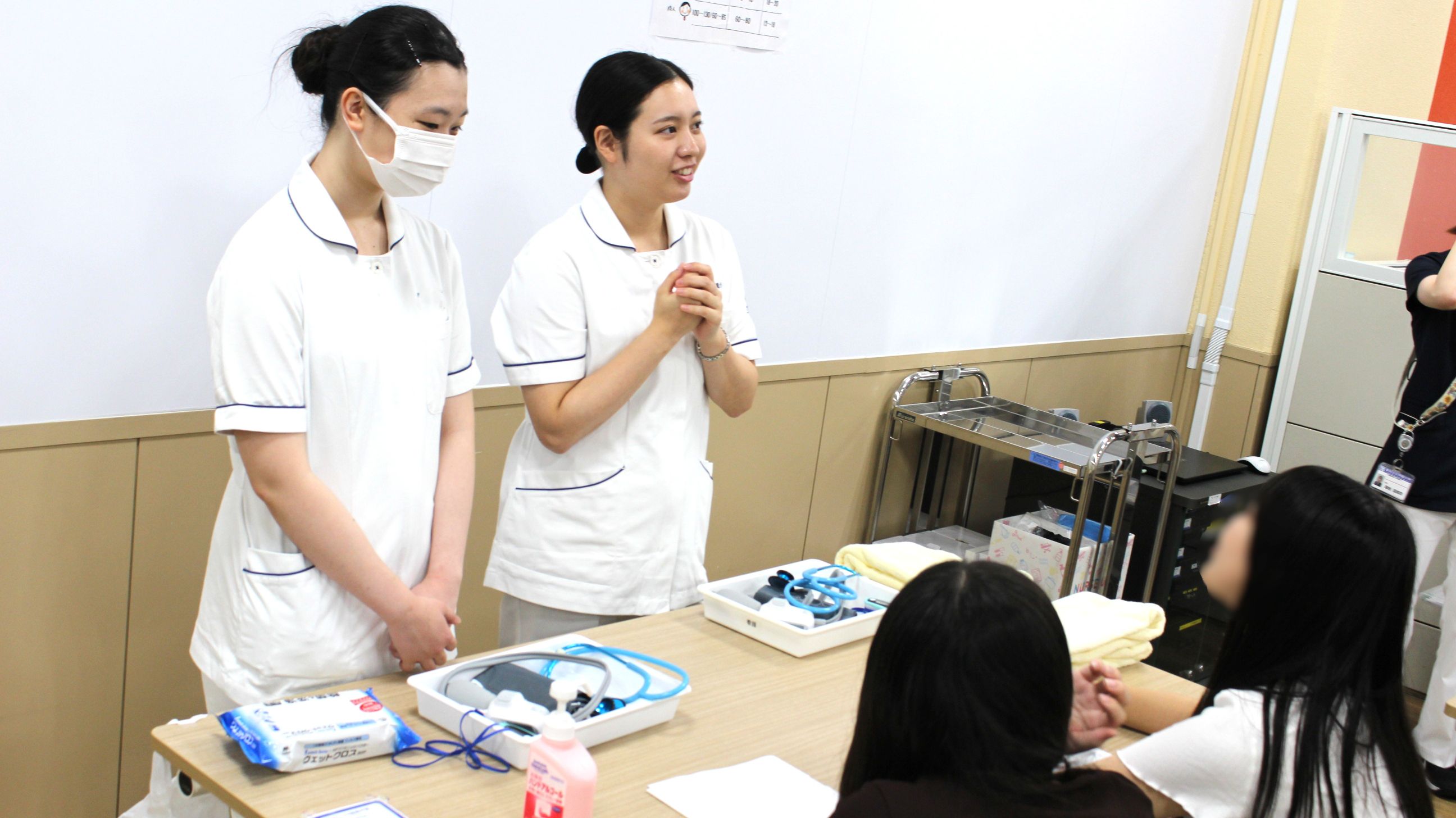 皆さま真剣な表情で取り組んでいただき、看護師・保健師の仕事内容の一部に実際に触れていただきました。