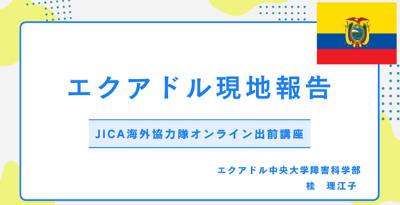 元本専攻教員の桂理江子先生が,現在はエクアドルで活躍されています。