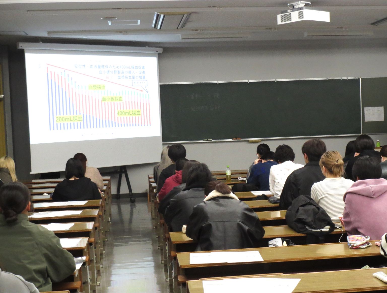 講義では、輸血や骨髄移植により命をつないでいる方の紹介や、骨髄バンクについて説明がありました。