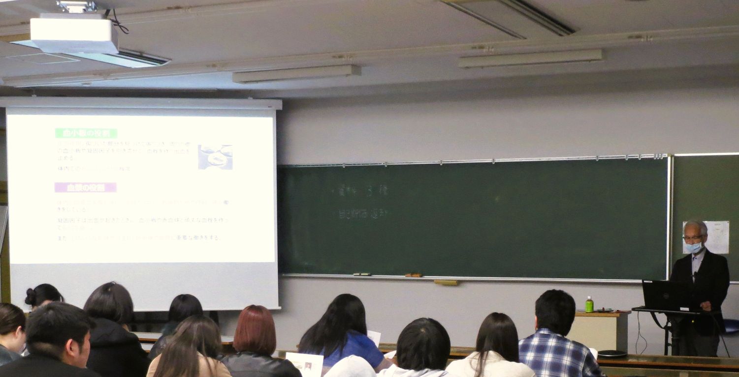 看護学科1年生を対象に、中川國利先生(一般社団法人宮城骨髄バンク理事長、東北ブロック赤十字血液センター名誉所長)による「献血、骨髄移植」について講義が実施されました。