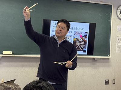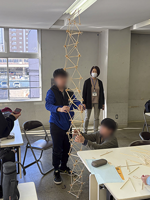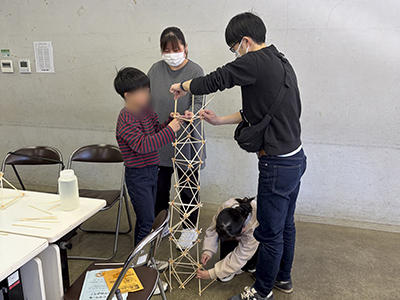 この一環として青葉区中央市民センターにて、本学建築環境学科の一條佑介准教授とアシスタントで本学科学生の福士さんで、2026年1月10日(土)に令和7年度 青葉区中央こども塾④「わりばしでタワーをつくってみよう!」開催しました。
