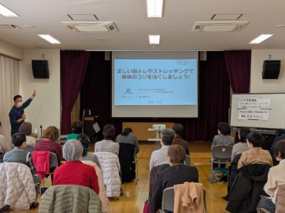 「正しい筋トレやストレッチングで身体のコリをほぐしましょう!」というタイトルのもと、肩こりや腰痛に対する運動とその考え方についてご紹介させていただきました。