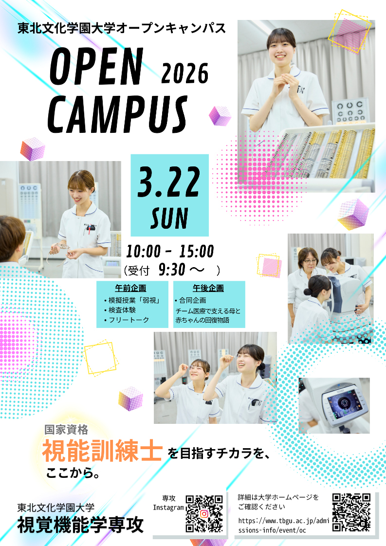 【視覚機能学専攻】3/22(日) オープンキャンパス開催!国家資格「視能訓練士」の魅力を体験しよう!