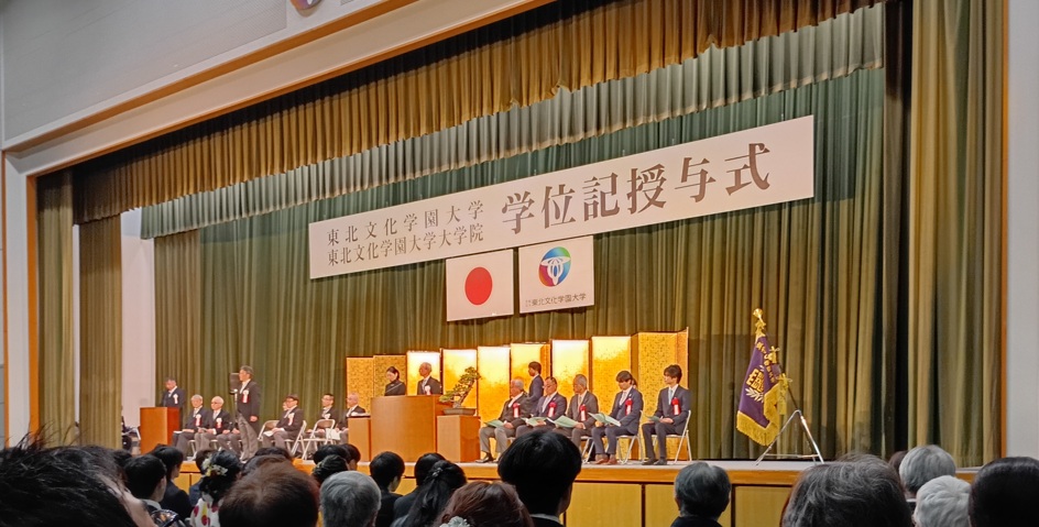 専攻長の柴田教授より卒業生に向けたお祝いの言葉と、そして、学位記が学生一人ずつに手渡されました。