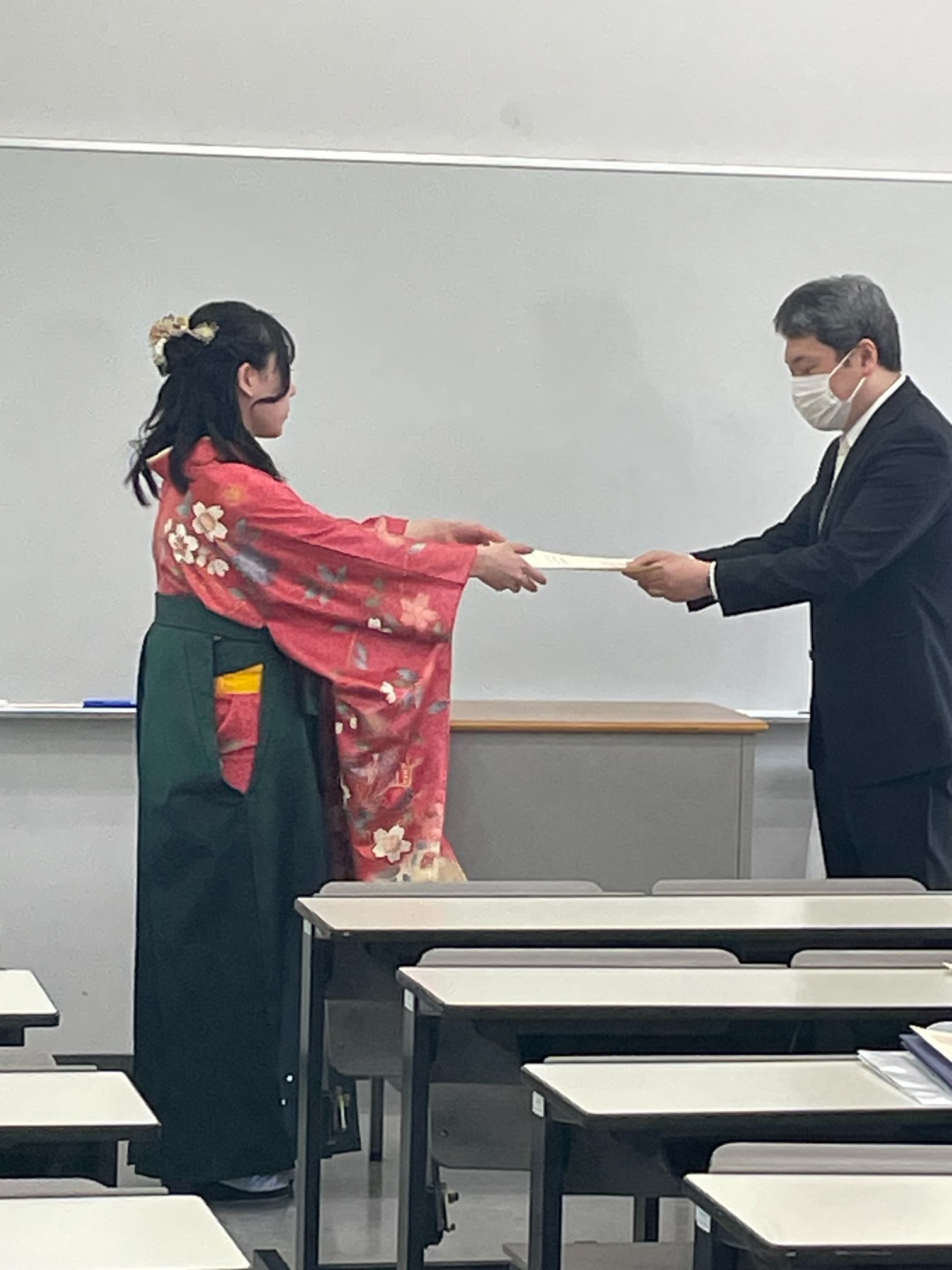 大学全体の式典に続き、言語聴覚学専攻にて学位記授与式が行われました。