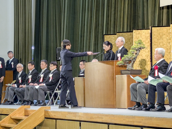 学長から学科代表者への学位記授与