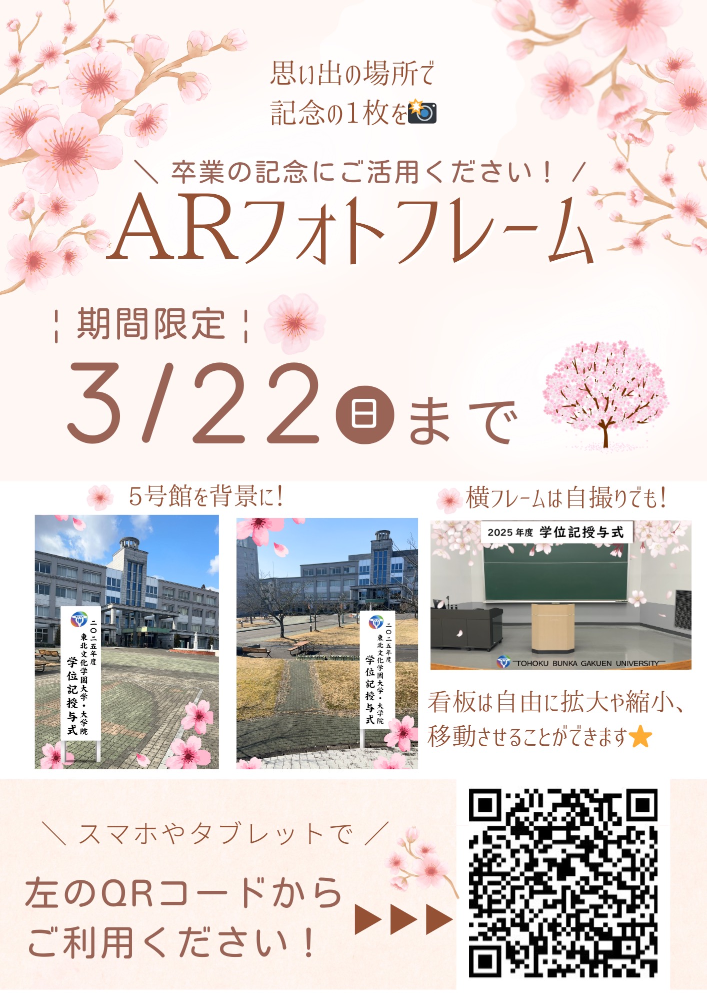 ARフォトフレームを使用すると、東北文化学園大学の記念看板で、