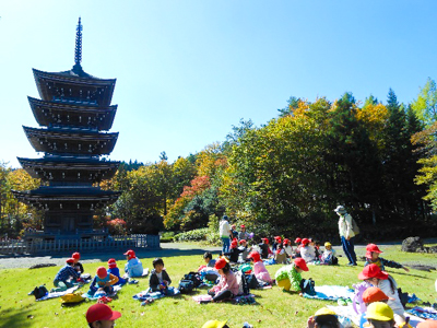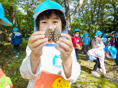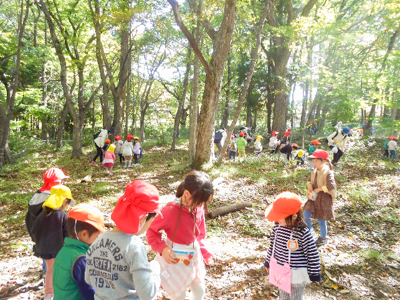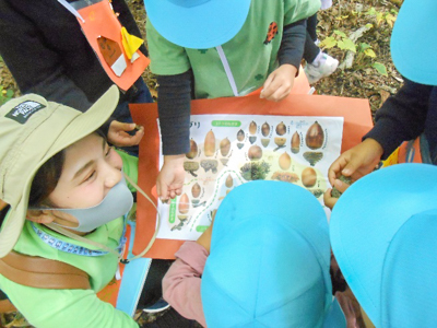 どんぐり拾いは、仲良しの友だちとバスでお出かけし、日常とは違う森の中で木の実拾いを満喫しました。