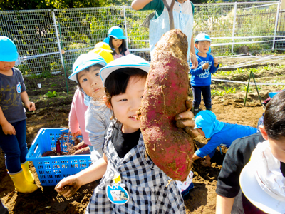 子どもたちは、春に植えたお芋の苗をひと夏かけて丁寧にお世話したおかげで、今年のさつまいもは大豊作でした。
