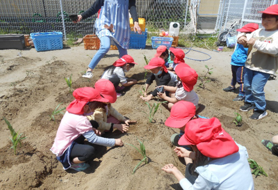 今年も、子どもたちの声を聴いて何の野菜を育てたいか皆で相談し、買い物に行く事にしました。