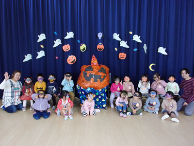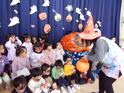 最後に魔女に変身した園長先生から、お菓子をもらって楽しいひと時を過ごしました。