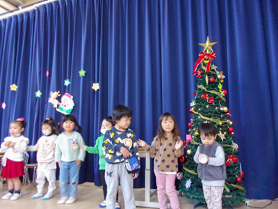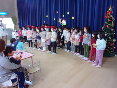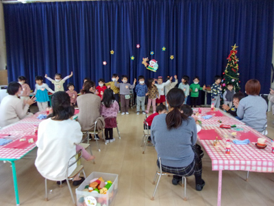年少さんがダンスを披露、年長さんはハンドベル演奏、歌の発表をしてくれました。