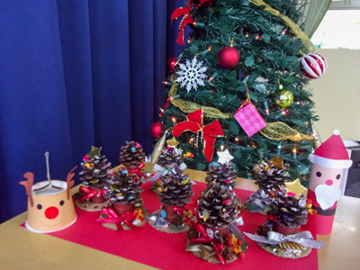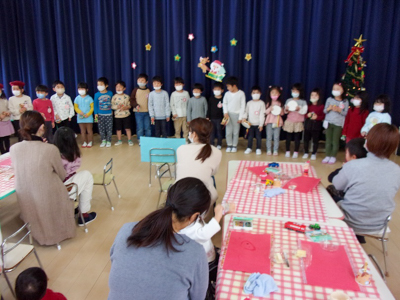 トナカイのベルと、サンタのオーナメントも作り、クリスマス気分を味わうことができました。