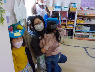 年少さんは、泣いて先生の後ろにかくれる子や逃げ回る子もいました。