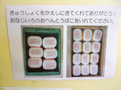 ごはんとおかず、それぞれの容器を分けて給食屋さんに返します。