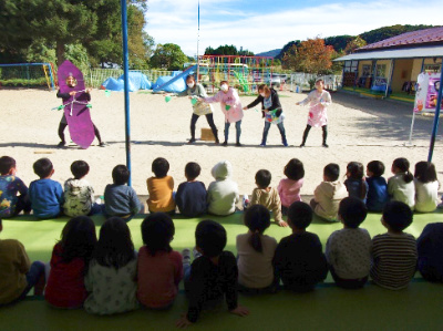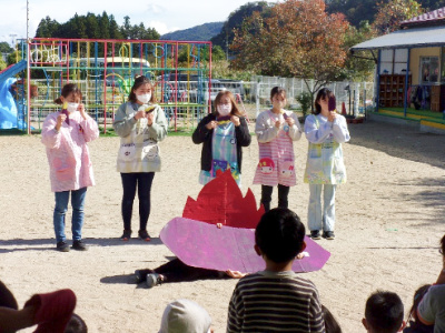 芋汁を煮ている間に、先生たちのお芋の劇を観ました。