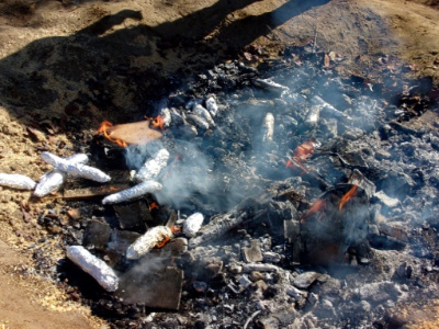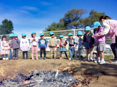 今日はさわやかな秋空の下、先週お芋を掘った畑にみんなで穴を掘って、焼き芋をしました。