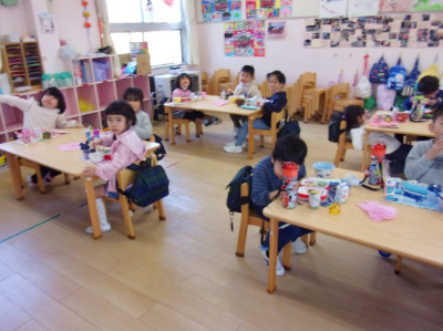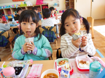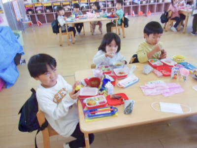 「おいしいにおいがする~」「はやく たべた~い」「何がはいっているの?」と興味津々です。