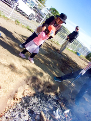 「けむりのにおいする~」「あったか~い」と、普段とは違う趣の畑に恐る恐る近付きます。