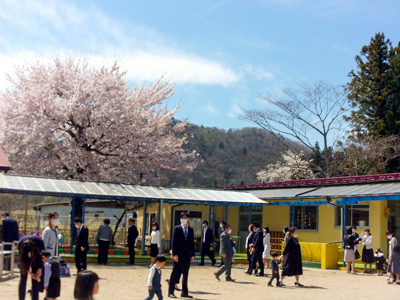 園庭の桜が満開で、天気にも恵まれた入園式。27名の可愛いお友だちが入園しました。