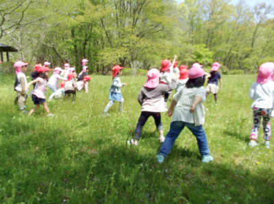 その後は春の自然物を探しや、鬼ごっこ、サッカーを楽しんだよ!