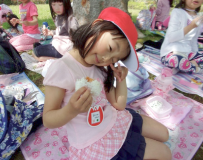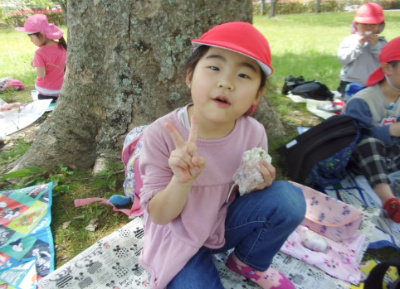 沢山動き回り、「先生お腹すいたよ~おにぎり食べたい!」と子ども達。
