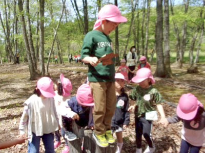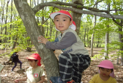 幼稚園でも木登りをしてるから、大きな木もへっちゃらさ!