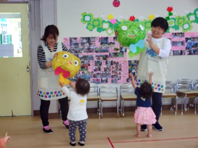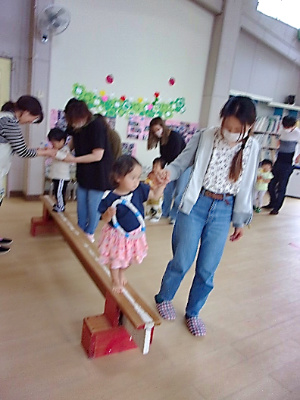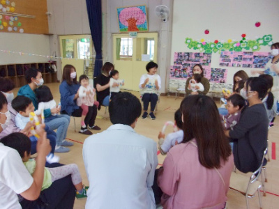 今年度の1回目は「友愛幼稚園を楽しもう」をテーマに、親子遊びや園内探険、保育見学を行いました。
