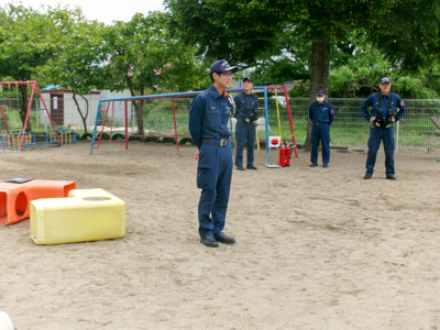 実際に火災報知機の大きなベルの音が鳴るとびっくりして泣き出す子もいましたが、みんな真剣な表情できちんと避難することができました。