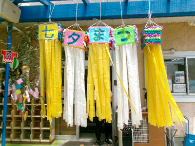 今年のたなばたまつりは親子一緒にお祭り気分を味わっていただきました!子どもたちが飾り付けた笹飾りや華やかな吹き流しがお客様をお出迎え。甚平や浴衣などを可愛らしい友愛キッズが元気いっぱいお祭りを楽しんでいました。