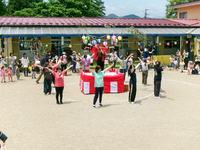 雨予報だったのが嘘のよう。快晴の下、やぐらを囲んで野菜音頭を踊ることができました。暑かった~!だけど、楽しかった~!また来年もお楽しみに。